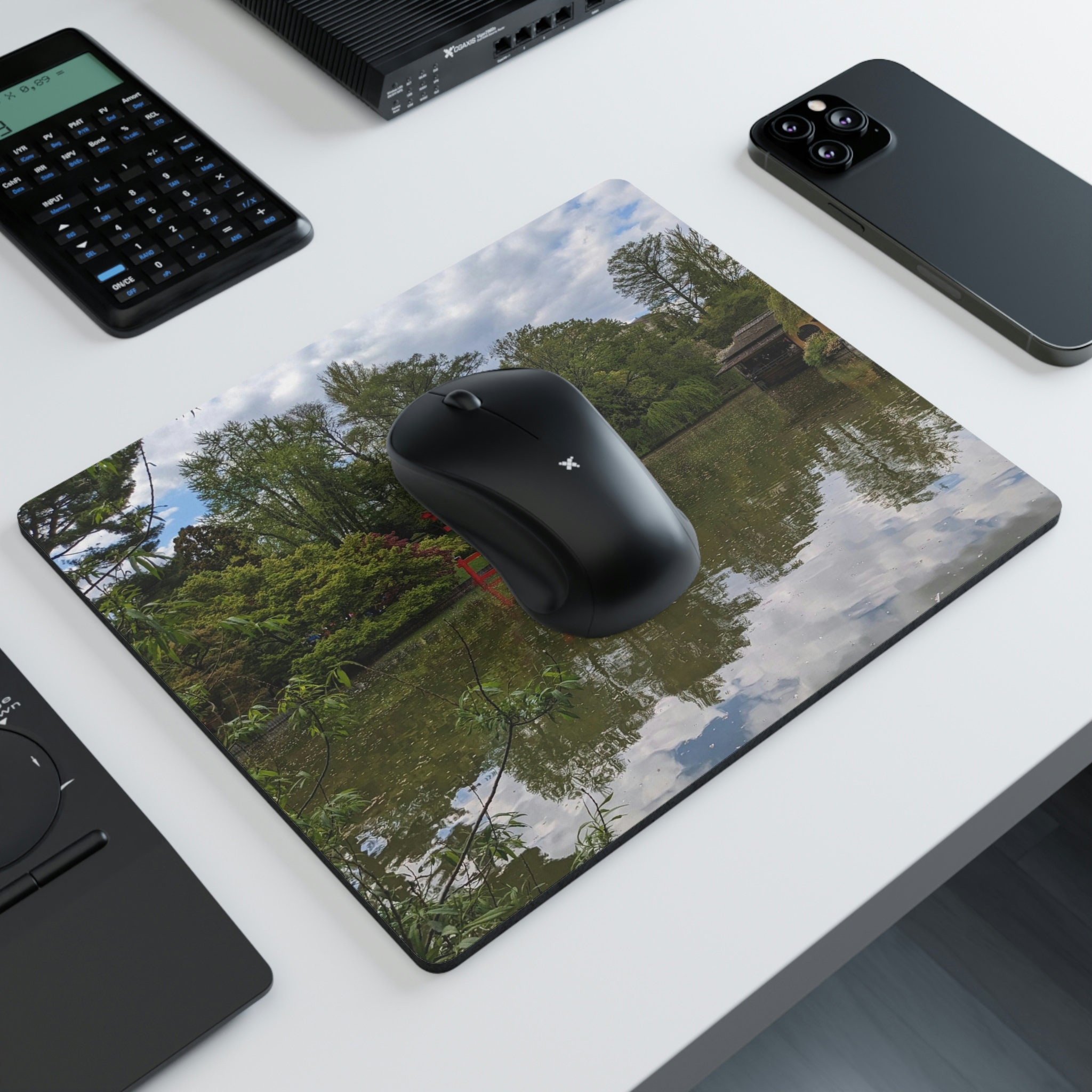 Add a custom touch to any workspace with the Zen Garden desk mouse pad. Measuring at 9.3" × 7.8" (23.6cm x 19.8cm), this mouse pad gives you ample space to print your custom artwork or photos in vivid detail. Equipped with a durable white cloth top base and a non-slip rubber backing, it makes for an excellent browsing experience with any optical mouse. 9.3" × 7.8" (23.6cm x 19.8cm) Non-slip rubber backing